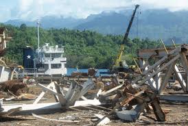 Actual shipment from Loloho to Asian markets. Large ships arrive regular on Bougainville's Loloho port to carry away these tonnes of scrap metal.